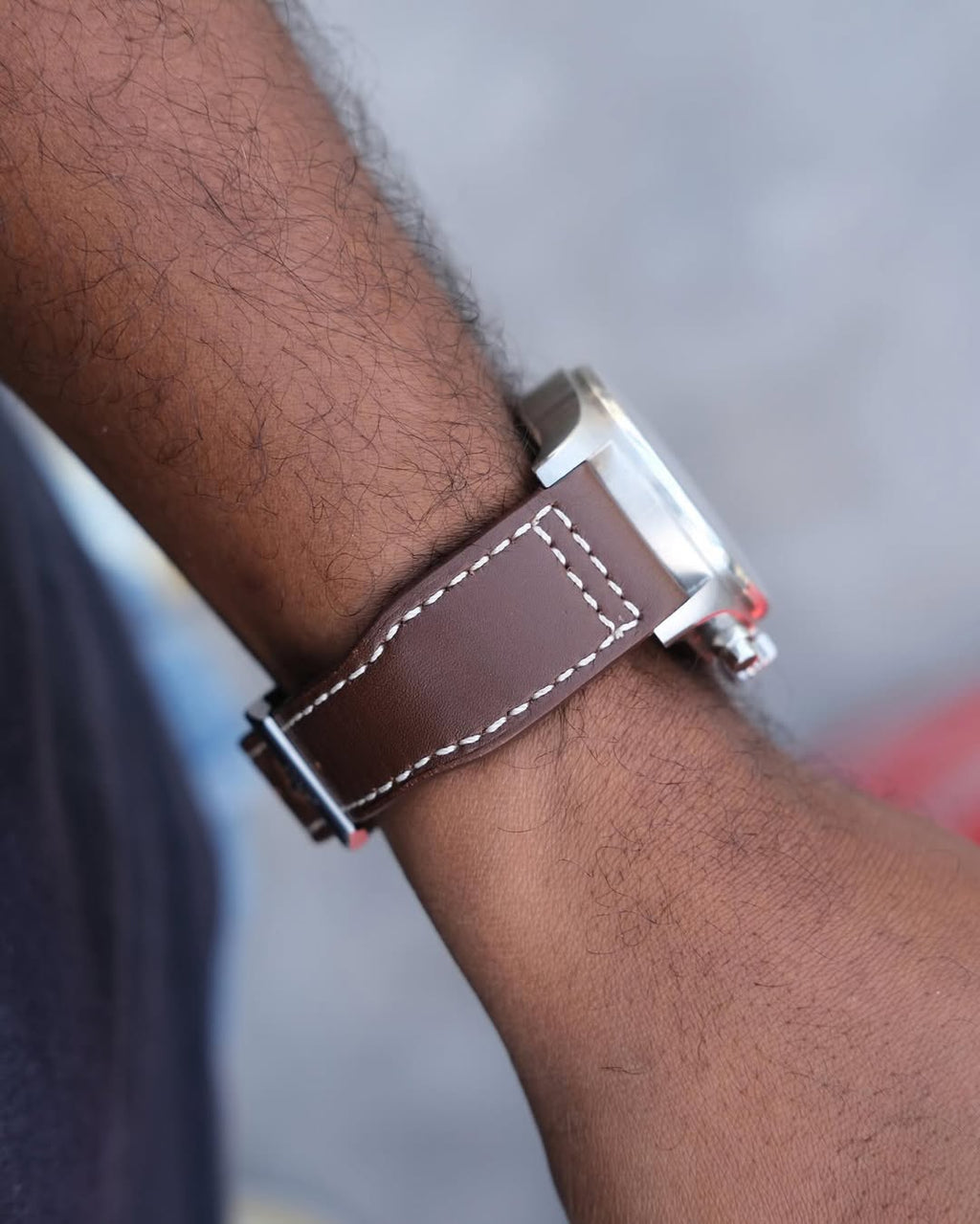 - ✔ Pulseira de couro marrom legítimo com costura clara