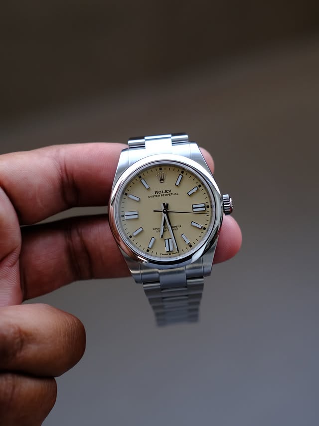O Oyster Perpetual Beige é a definição de elegância minimalista. Um dos modelos mais versáteis da Rolex, agora disponível em qualidade MIRROR, com um tom bege sofisticado que combina com qualquer estilo e ocasião.